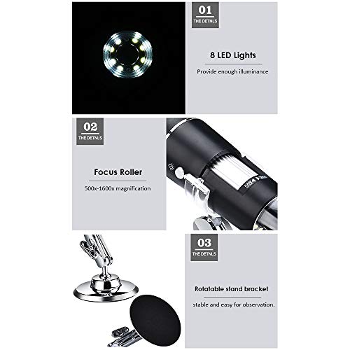 🔬 1080P high definition picture quality, 500x /1000x /1600x magnification can meet your daily needs.
