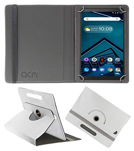 Acm Rotating Leather Flip Case Compatible with Lenovo Tab V7 Phablet Za4L0052In Tablet Cover Stand White