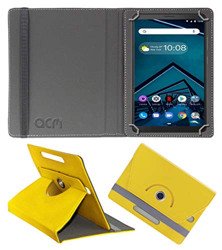 Acm Rotating Leather Flip Case Compatible with Lenovo Tab V7 Phablet Za4L0052In Tablet Cover Stand Yellow