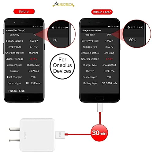 ASPROTECH DASH FAST CHARGING CABLE COMPATIBLE ALL ONE PLUS PHONES-NORD.NORD-2,One Plus 8, One Plus 8T,One Plus 8Pro,‎OnePlus 3, OnePlus 5, OnePlus 5T, OnePlus 6T, OnePlus 7, OnePlus 6, OnePlus 7T ( Upto 4A 5V), OnePlus 3T, OnePlus 7T Pro ( Upto 4A 5V), OnePlus 7 Pro ( Upto 4A 5V), Up to 480 Mbps data transfer speed; power output up to 5V, 4 Amp (Dash Charge Supported)Power whenever you need it:Our ultra-fast charging technology makes overnight charging a thing of the past. Simply plug in your OnePlus Phones for 20 minutes for enough power to get you going, without having to worry about your device slowing down or overheating Dash Charge uses a 5V / 4A (20W) configuration, and require dedicated Dash Charge / Dash Charge compatible Adaptor . ‎Length : 1M, Connector : Reversible Type C, Wattage : Wattage/5A on newer devices with WARP charge supported technology., Wattage : 5V/4A on older devices with DASH charge supported technology., Color : Red & White The dash charging adapter is a 20W unit, with a 5V / 4A configuration at peak level, stepping down to 5V / 2A (10W) for safe charging near full capacity. Connect USB Type-C enabled devices (Oneplus, MacBook, Chromebook Pixel, Galaxy Note 7, etc.) with standard USB Type-A enabled devices (laptops, hard drives, power banks, wall/car chargers, etc.)