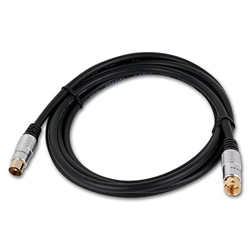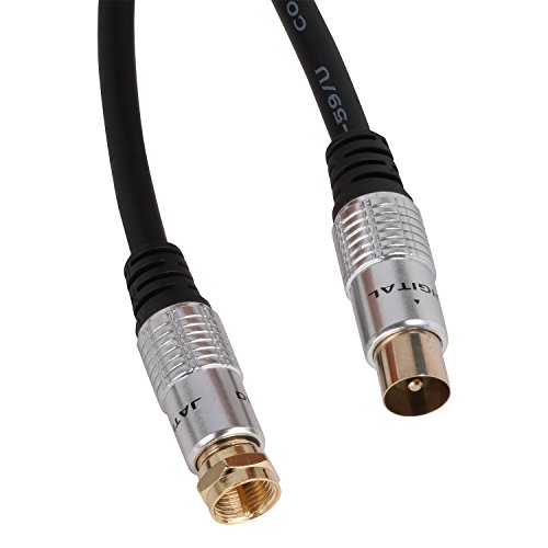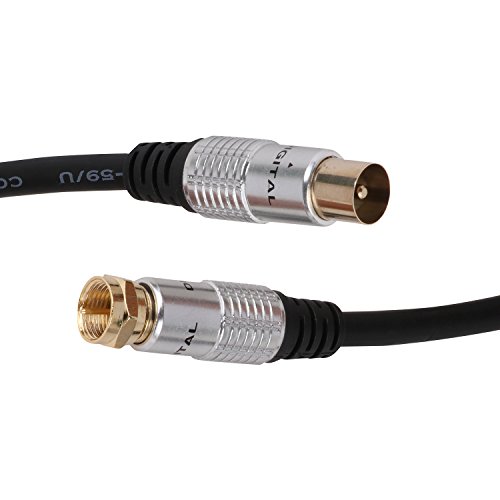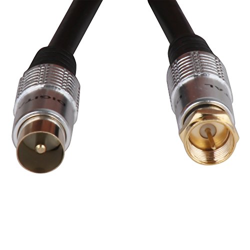 High performance cable for connecting a cable television VCR satellite receiver cable box digital router cable modem antenna or other devices with 9.5mm TV coaxial female port and F Type female port. F Type Male to 9.5mm Male coax cable connectors – Connects Antennas Receivers Meters and Radio transmitters. Ultra Low-loss Double Shielded Coaxial Cable. The outer wire is made of high quality PVC imported ultra-low capacitance and high physical foaming PE definition of oxygen-free copper (OFC) conductor. Usage:Plug one end into the digital set-top box and plug the other end to Rf input port of the television.