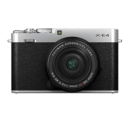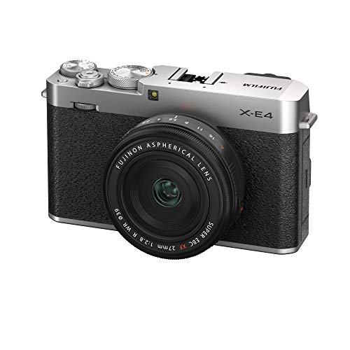 Fujifilm X-E4 Mirrorless Camera Body with XF27mmF2.8 R WR Prime Lens- Silver (Compact Body, X-Trans CMOS 4 Sensor, Fast AF, Face/Eye AF, 180° Tilting LCD Screen, EVF, 4K Video, Film Simulation Modes)