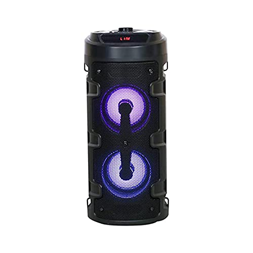 Bring the party experience to a bigger crowd with long distance bass sound. Two mid-range speakers deliver clear vocals for those soaring dance anthems, while pulsing lights create a club-like atmosphere.Bring the party experience to a bigger crowd with long distance bass sound. Two mid-range speakers deliver clear vocals for those soaring dance anthems, while pulsing lights create a club-like atmosphere. This portable sound is perfect for those summer time beach days. With the built-in Bluetooth capability, FM radio, aux-in, mic-in, USB and micro-SD inputs. You can enjoy music anyway want. Don’t worry about a power outlet. The built-in rechargeable lithium battery allows you to listen to music for hours.