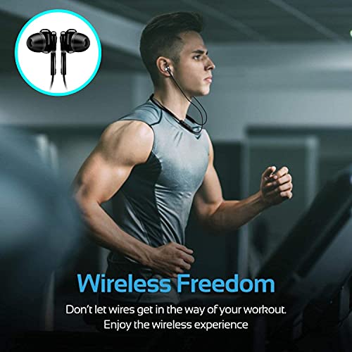 ♬【LIGHTWEIGHT & FLEXIBLE HEADPHONES】With compact neckband and ergonomic earbuds design, NOYMI sport bluetooth headphones is more flexible and convenient to carry in your bag or pocket which gives you a convenient storage way to carry around and becomes a fashion embellishment.