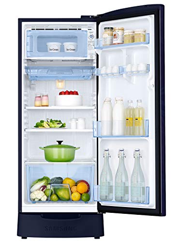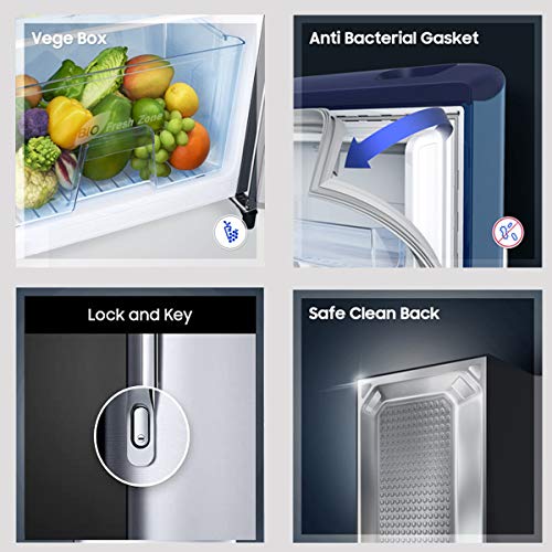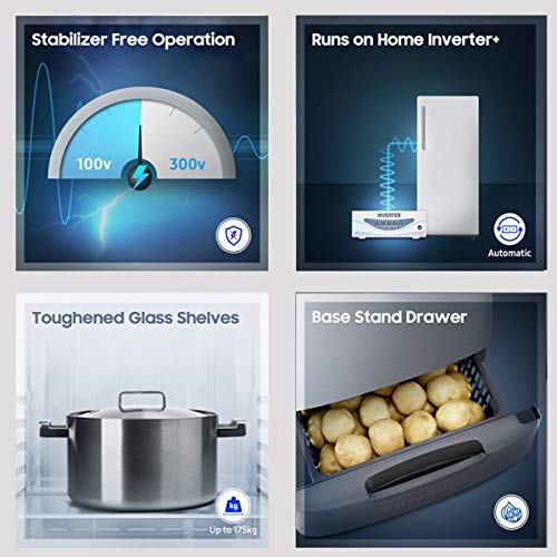 This Samsung’s Direct Cool Refrigerator comes with unique and innovative design, Stabilizer free operation Protects the refrigerator from power fluctuations. The Stabilizer Free Operation keeps it working steadily and reliably. It comes with a Vege Box, which eases your work by letting you store vegetables and fruits in one section. Also, you won’t have to take out the leftover food items from the kadhai or pressure cooker and keep them in smaller bowls, as you can directly place these big utensils on the Toughened Glass Shelves, with Base stand drawer Keep vegetables at room temperature much more easily with extra space for dry vegetables with Base Staand Drawer