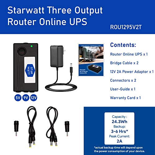 STARWATT 3 Output WiFI Router UPS for 5V / 9V / 12V WiFi Router Uninterrupted Power Backup for All Brand of Wi-Fi Router / Broadband Modem Set Top Box with 2 hours Power Backup with Wall Mount and 12V Adaptor