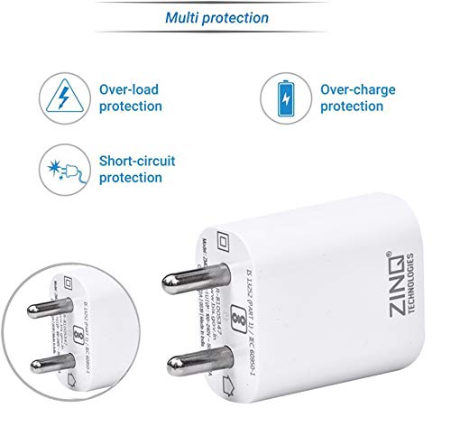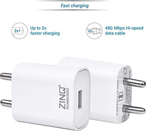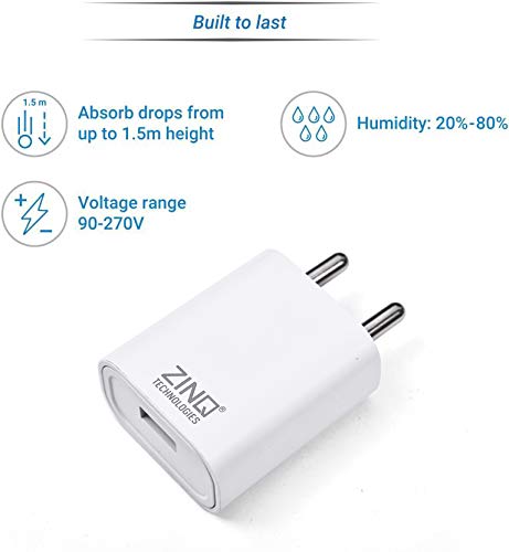 Zinq Technologies 2A Single Port Mobile Charger with 1Mtr USB Cable Included (White)